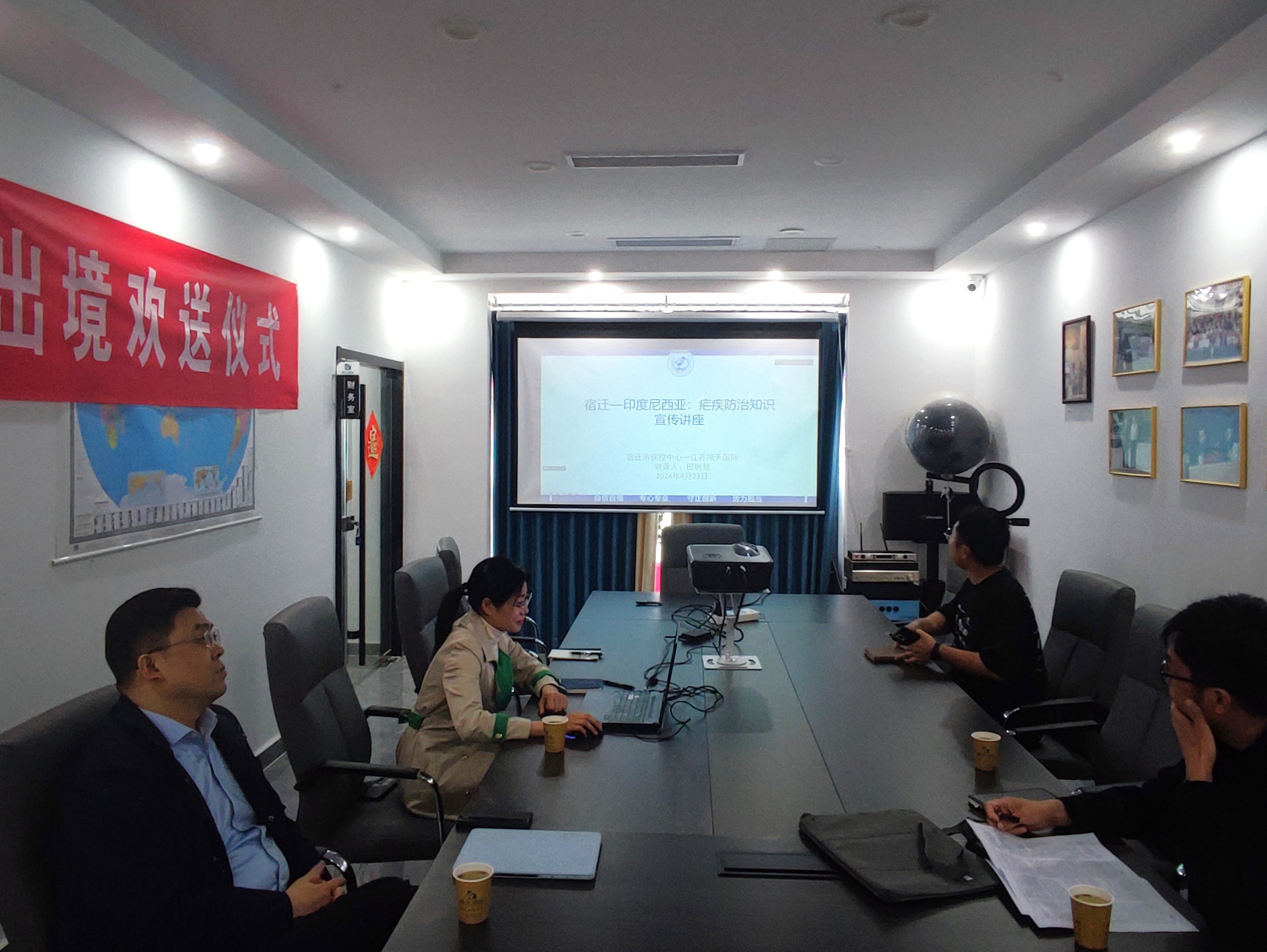 4月23日,宿遷市疾控中心通過網絡視頻連線方式對江蘇翔天國際經濟技術合作有限公司赴印度尼西亞的勞務派遣員工進行瘧疾防治知識宣講,前方40余名員工參加活動。市疾控中心黨總支書記、主任陳曉軍出席會議。