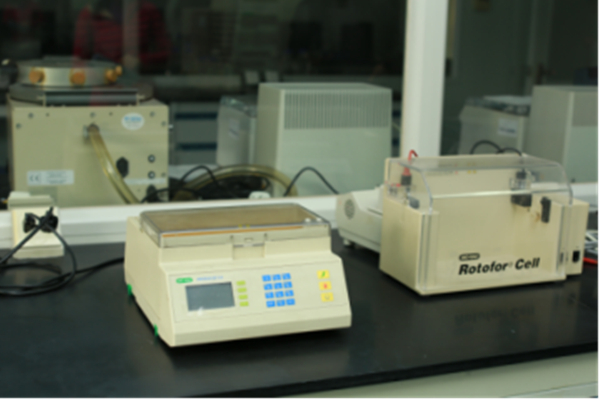 型號:Bio-Rad PROTEAN IEF。擁有2D(二維,Bio-RAD)電泳系統(包括等電聚焦系統和小/中/大型垂直平板電泳系統)、制備型液相等電聚焦系統( Rotofor,Bio-RAD)、小/中型轉印系統及大型水平電泳系統(LKB),全自動且較系統,可進行蛋白質的普通垂直平板電泳(SDS-PAGE)、二維電泳、分析/制備等電聚焦、蛋白轉印等實驗。可從事生物組織、細胞、血清、尿液、蟲體等的分子量、純度、等電點及蛋白組學等研究工作。