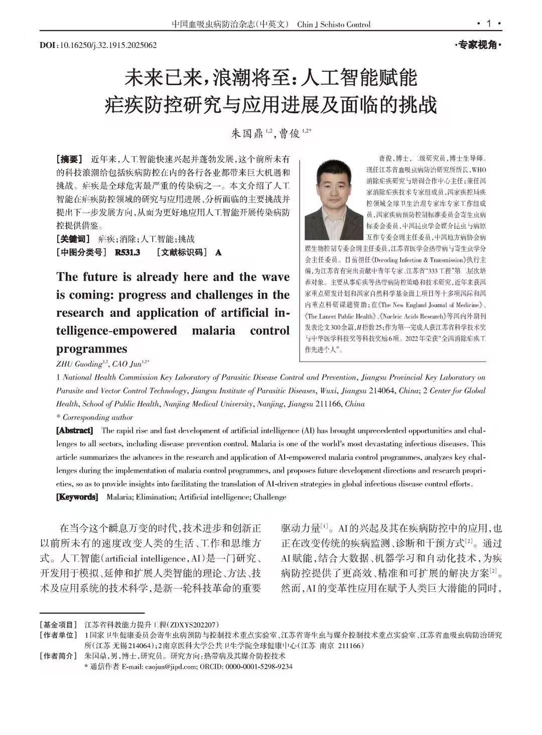 省血防研究所組織專家在《中國血吸蟲病防治雜志》發表專題論文“未來已來,浪潮將至:人工智能賦能瘧疾防控研究與應用進展及面臨的挑戰”,從專家視角系統梳理了人工智能在瘧疾監測預警、病原檢測與診斷、藥物研發與治療、蚊媒監測與防制、健康宣教與行為干預以及數據整合與決策支持等領域的突破性應用,分析了面臨的主要挑戰并提出下一步發展方向,為更好應用人工智能開展瘧疾防控提供借鑒。