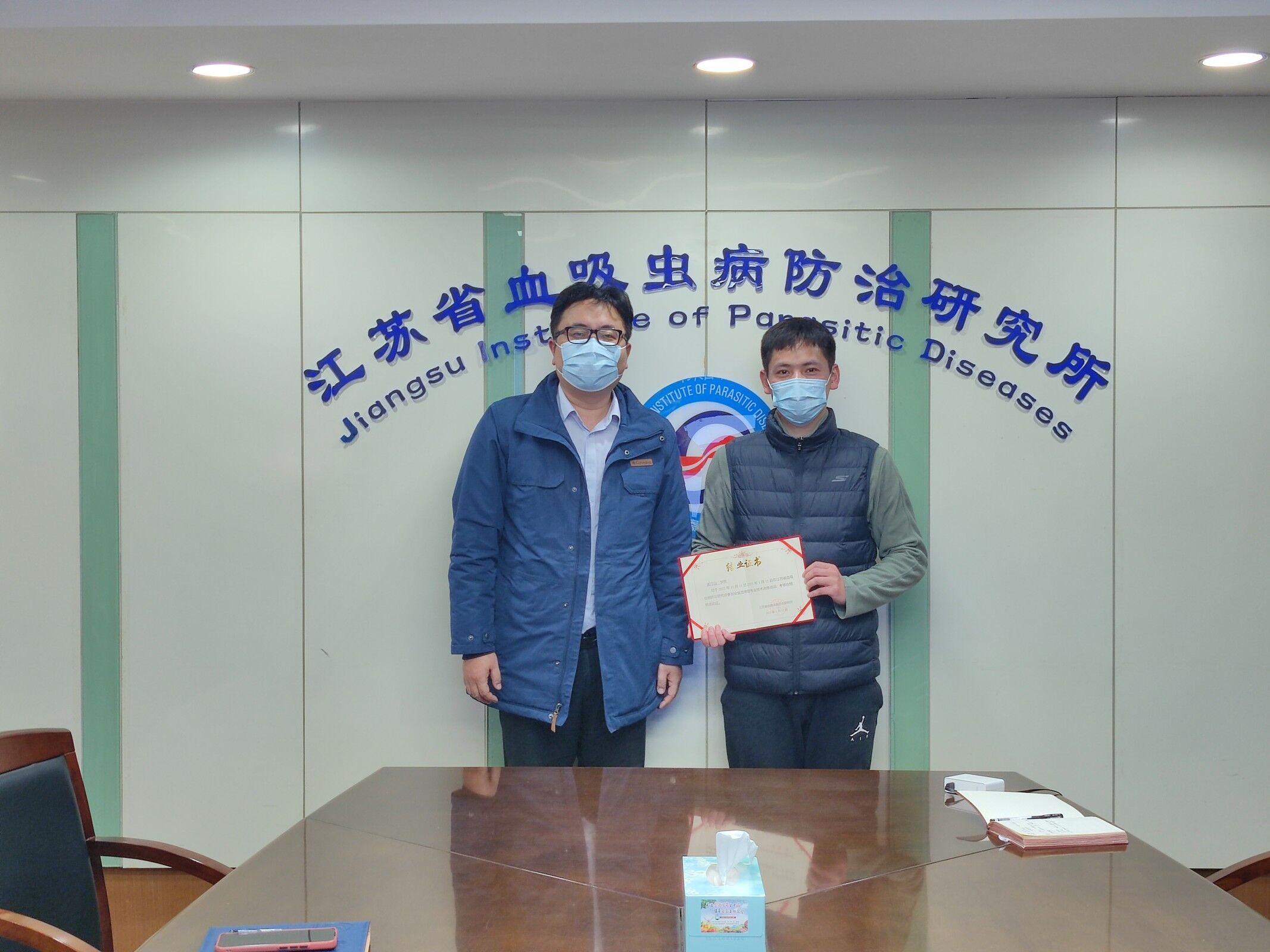 帶教科室負責人對其培訓期間情況進行了點評,認為其在血寄防方面的理論、技術和現場綜合能力方面都得到了明顯提升,希望在未來工作中,能把進修所得運用到實際防治工作中,推動工作再上新臺階。李偉副所長對孟江山學員進修培訓的收獲予以肯定,同時,他也希望未來能進一步提升個人的學習、思考、總結、執行和創新五方面能力,不斷提升知識儲備和綜合能力,為寄生蟲病防治事業作出貢獻,并頒發了結業證書。
