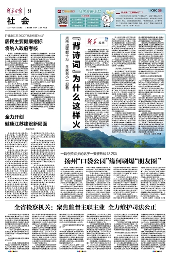 [新華日報訊] 為貫徹落實全國衛生與健康大會精神和“健康中國2030”規劃綱要,扎實推進健康江蘇建設,不斷提高人民群眾健康水平,省委、省政府近日印發《“健康江蘇2030”規劃綱要》,要求各地區各部門結合實際認真貫徹落實。
