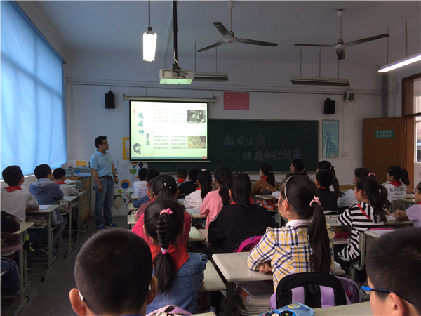 市血防人員為濱湖區華莊中學學生上血防健康教育課