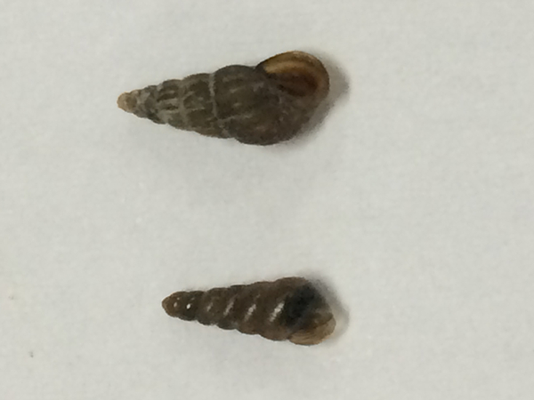 上圖中,左邊為陳老先生送來的煙管螺,右邊是內(nèi)陸釘螺,從形狀看區(qū)別還是很大的!