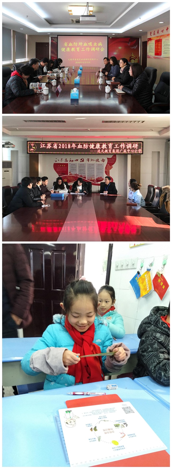 12月13日,由江蘇省血防所劉耀寶副主任和黃軼昕主任醫(yī)師等成員組成的專家組在無錫市疾控中心領導的陪同下來到無錫市梁溪區(qū),調(diào)研了梁溪區(qū)2018年血吸蟲病健康教育工作情況。