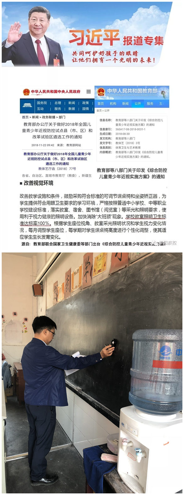 針對以上問題,中心已向發現問題的學校提出整改意見,要求學校嚴格按照國家標準整改到位。中心建議學校在新、擴、改建教室時,按照《學校衛生工作條例》,積極聯系衛生行政部門對教室設計、布局進行監督指導。今后中心也將聯合教育部門加強對學校教室環境衛生的監測,并開展對學校用燈健康化的科學宣傳,做好學生健康用眼教育,真正落實好習近平總書記“全社會都要行動起來,共同呵護好孩子的眼睛,讓他們擁有一個光明的未來”的重要指示。